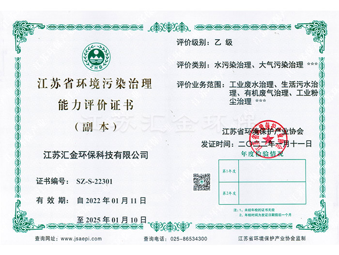 江蘇省環(huán)境污染治理能力評價證書