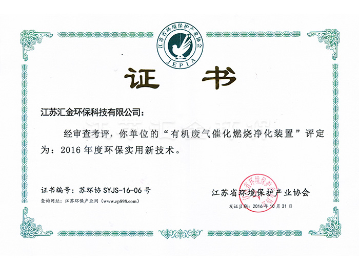 有機(jī)廢氣環(huán)保實(shí)用技術(shù)證書(shū)